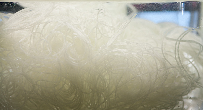 Finally, the super-duper fun part. To make Potato Threads, I got to use my Japanese Rotary Slicer (which first saw use here). The slicer on its own produces long thin sheets; I had to buy an add-on kit to swap out some parts for making laces.